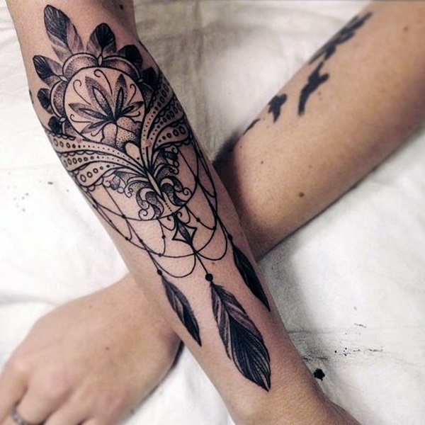 A beautiful woven web accompanied by bird feather that is believed to catch dreams looks amazing when tattooed at a larger canvas like back and forearms. You may also add up other leaves, gems and stones that are in vivid colors to elaborate the design as well as the meaning of the tattoo. Also check out dragonfly tattoo designs for women, They are trending these days.