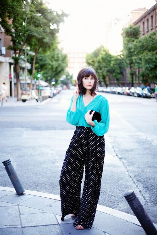Maxi pants have acquired fame right since the retro actresses brought it into trend. Tuck a chiffon shirt with collars in the maxi pants and wear a simple blazer over it. Stilettos look way beautiful with this attire. You may also wear a statement waist belt with rhinestones to reflect your glamorous look.