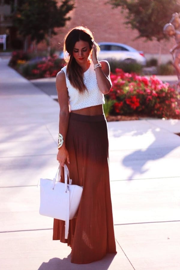 You can wear a maxi skirt with crop top to have a funny spring look.