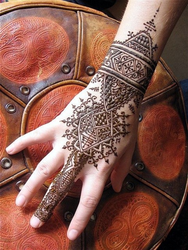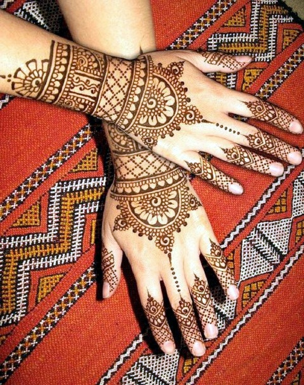 Straight lines cutting at right angles, triangles, diamonds, chevrons, and other specific layouts, are the signature patterns of the Moroccan style henna. These patterns are trend setting as they look extraordinary with any outfit.