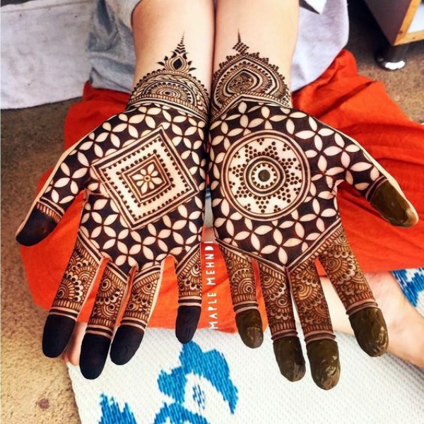 Circular motifs look great as they are aesthetically very appealing. There is something about a neat circle that makes an impression, thus allowing the design to last in our minds even after the actual henna has faded away. These motifs are usually placed in the center of the palm or on the back of your hand.