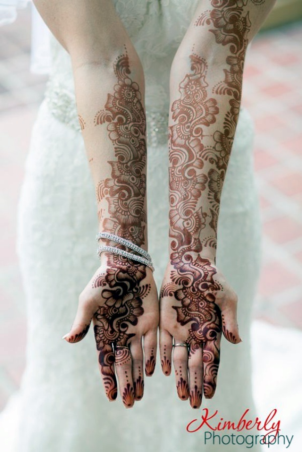 This design is simple as neither there is any flower, leaves or any bird’s motif. Plain lines with semi-circular borders makes this design look awesome and complex. This type of henna designs compliments the wedding hand jewelries.