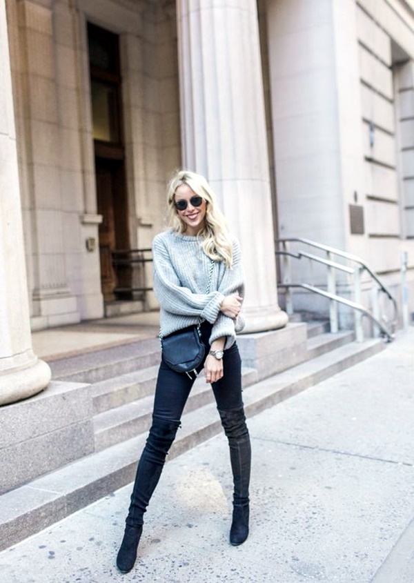 If you want to achieve a casual yet edgy look, then you might like to try your favorite pair of knee ripped tight jeans with cropped denim jacket. Girls in tight jeans will definitely make others jealous with this awesome style.